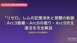 Arc9でアナスタシアが何を取り戻し、王選にどう関わるのか——記憶と名前と寿命という3つの「失ったもの」を抱えながら、それでも「ホーシン商会の会長」として立ち続ける彼女の物語は、リゼロ最終章へ向けてまだ動き続けている。