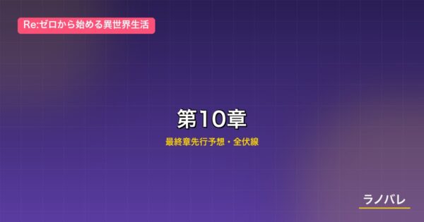 | 第10章 | 44巻〜(予想:50〜55巻) | 王都ルグニカ/最終決戦 | 2026年〜(予想:2028〜2030年完結) |