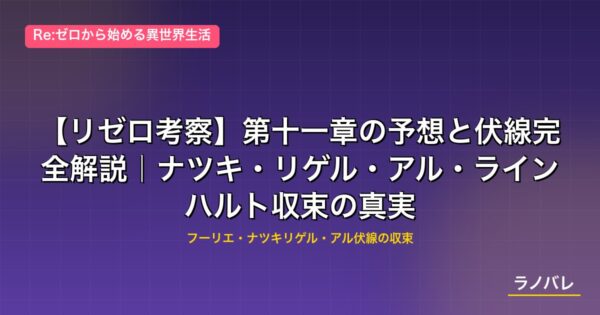 「Re:ゼロから始める異世界生活」は全十一章で完結すると、作者・長月達平は早くから明言してきた。2026年4月現在、物語は第十章「獅子王の国」(原作44巻〜)の入口にようやく立ったばかりだ。第九章「名も無き星の光」(39〜44巻)では、アルデバランの真名「ナツキ・リゲル」が明かされ、スバルの物語は根底から揺さぶられた。では、その先にある第十一章は何を描くのか。現時点の伏線・設定から、最終章への道筋を考察する。