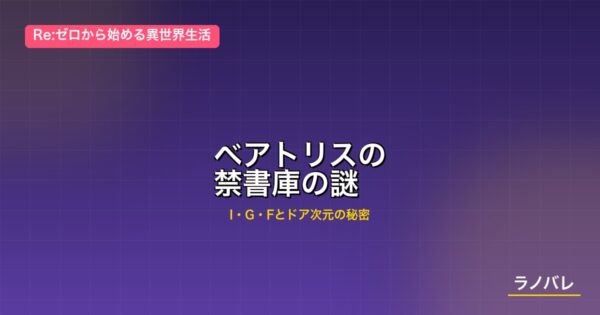 禁書庫(I・G・F)は、リゼロという物語において単なる設定上の場所ではありません。それはエキドナの知識と遺志の象徴であり、ベアトリスの400年の孤独の証であり、スバルとの出会いによって初めて「目的を果たした場所」となりました。