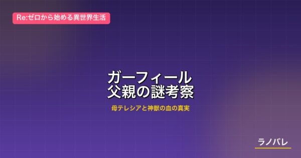 ガーフィール・ティンゼルの父親の謎は、リゼロ原作の中でも最も謎めいた未解決の問いのひとつだ。母テレシアは半獣人として聖域に縛られながら子を産み、その子たちはそれぞれ異なる父親を持つ。フレデリカは人間寄りの外見と能力を持ち、一方のガーフィールは色濃い獣の血と特殊な神獣化能力を持っている。この非対称は、父親の血統が決定的な違いをもたらしていることを強く示唆している。