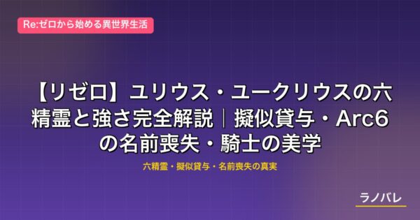 本記事では、ユリウス・ユークリウスの六精霊の名前と属性、精霊との契約の仕組み、精霊魔法の技「クラウゼリア」「クラルスティア」、Arc3「白鯨討伐戦」からArc5「プリステラ」、そしてArc6「プレアデス監視塔」での名前喪失まで、原作小説の内容を元に徹底解説する。