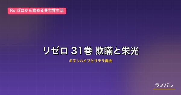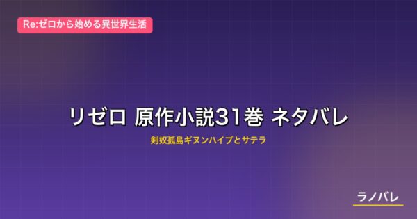 リゼロ31巻は、剣奴孤島ギヌンハイブという閉鎖空間でのサバイバル、トッドとの死闘、そして嫉妬の魔女サテラとの再会という、第七章屈指の重要エピソードを含む巻です。