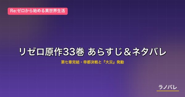 『Re:ゼロから始める異世界生活』原作小説33巻のあらすじ・ネタバレ・考察を、第七章完結巻として徹底的に読み解く記事です。
