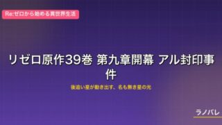 • 39巻:第九章開幕巻。40巻の直接的な前段。アルの宣戦布告とスバル封印の描写が重要。