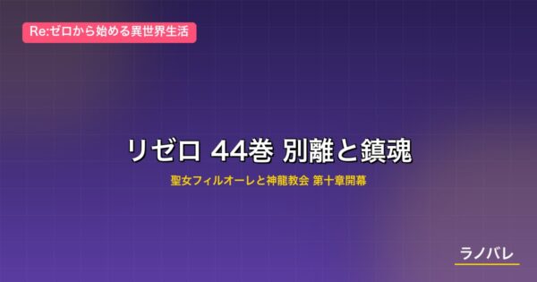 リゼロ44巻『別離と鎮魂の四十四幕』は、第十章「獅子王の国」の開幕巻として、プリシラとアルの喪失、神龍教会の干渉、聖女フィルオーレの出現、クルシュの呪い浄化、フェリスの離脱という、シリーズ最終章の第一幕に相応しい激動の展開を描く最新刊です。