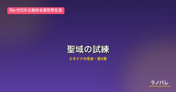 『Re:ゼロから始める異世界生活』第4章「永遠の契約」(原作小説11〜15巻/アニメ2期相当)の核心となる「聖域の試練」について解説します。エミリア・ガーフィール・スバルの過去や、エキドナの真意、第4章クライマックスまで踏み込んだ内容を含みますので、未読・未視聴の方はご注意ください。